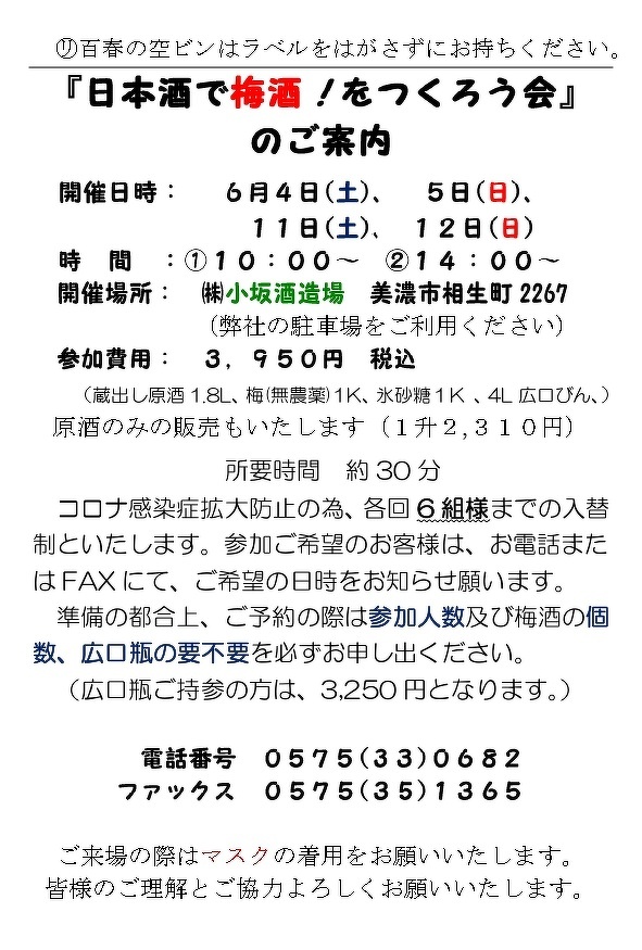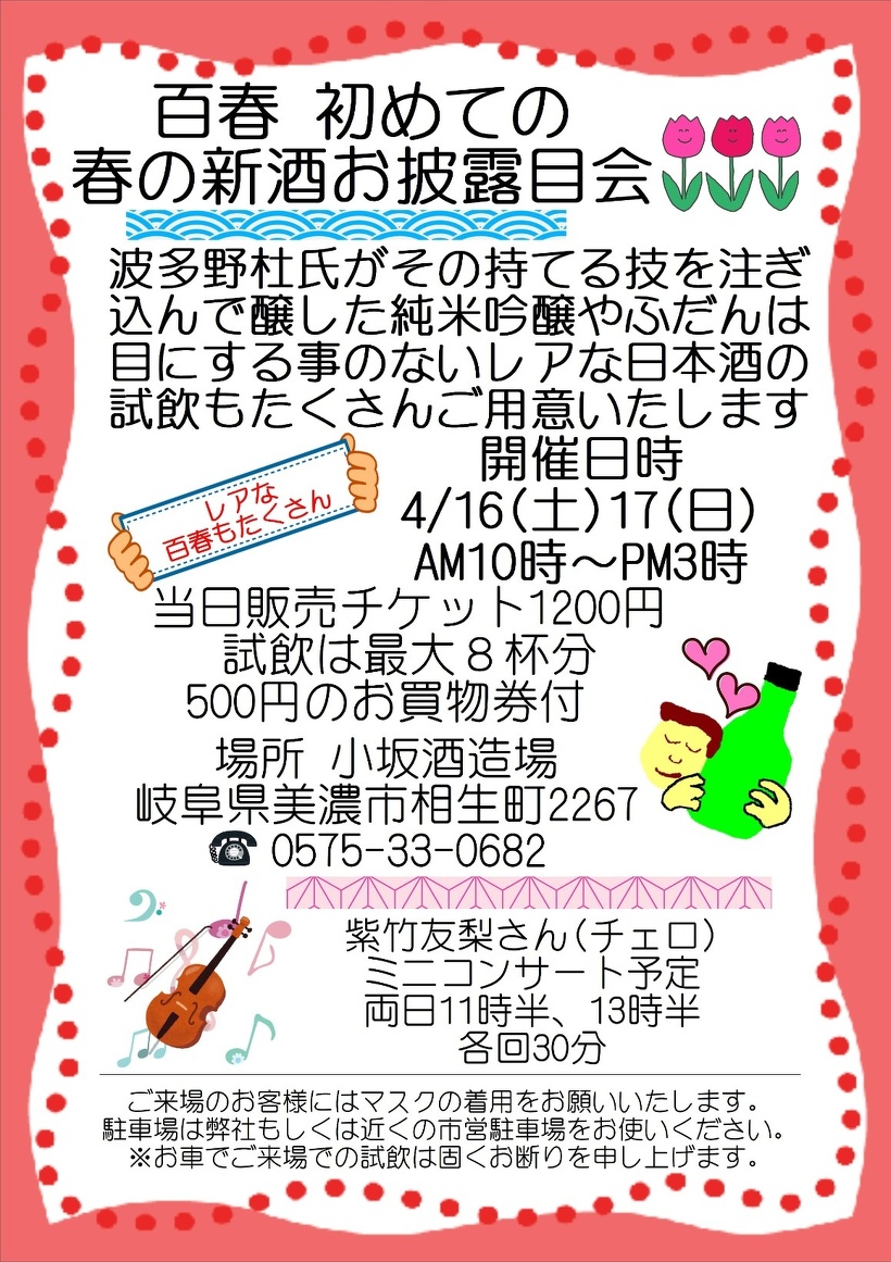 夏の「百春 無ろ過生原酒」に、乞うご期待!